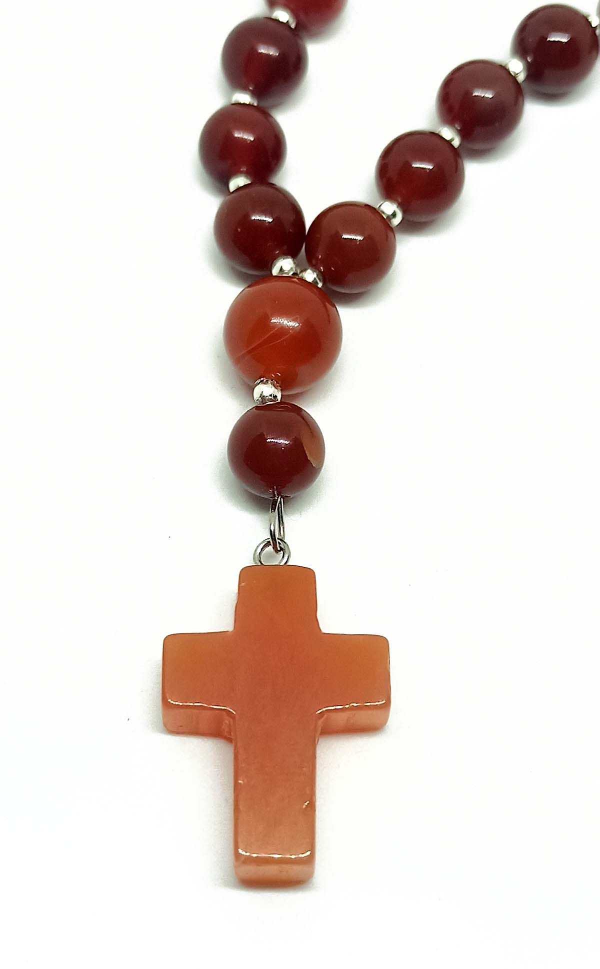 купить: Четки монохром с каменным крестом из сердолика с металлическими проставками